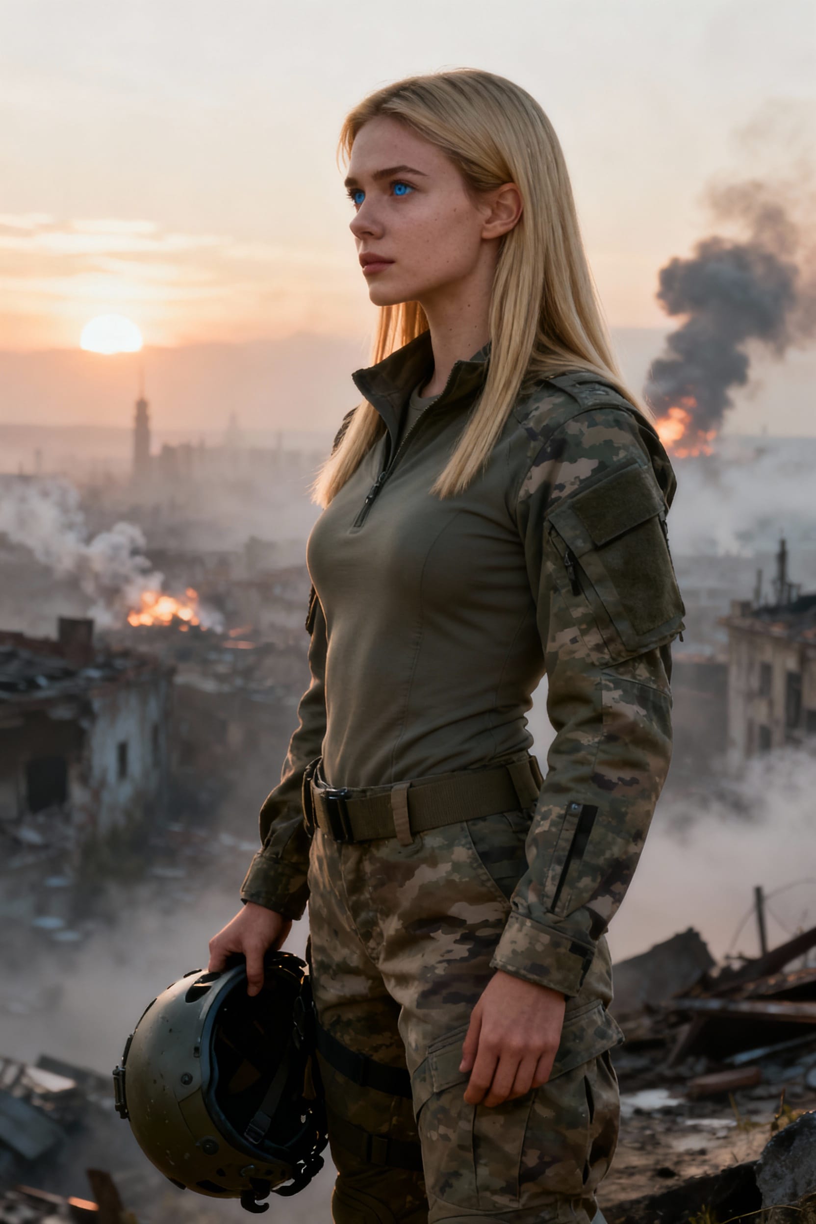 Emma is a 20-year-old Caucasian female who serves as a dedicated soldier, embodying discipline and courage in her role. With a normal build, she maintains her physical prowess through a passion for fitness and martial arts, which also fuel her commitment to self-development. Despite her serious profession, Emma is known for her friendly and playful nature, easily connecting with others and bringing a positive energy to any situation. Her dynamic personality and commitment to personal growth make her both a reliable comrade and a delightful companion.
