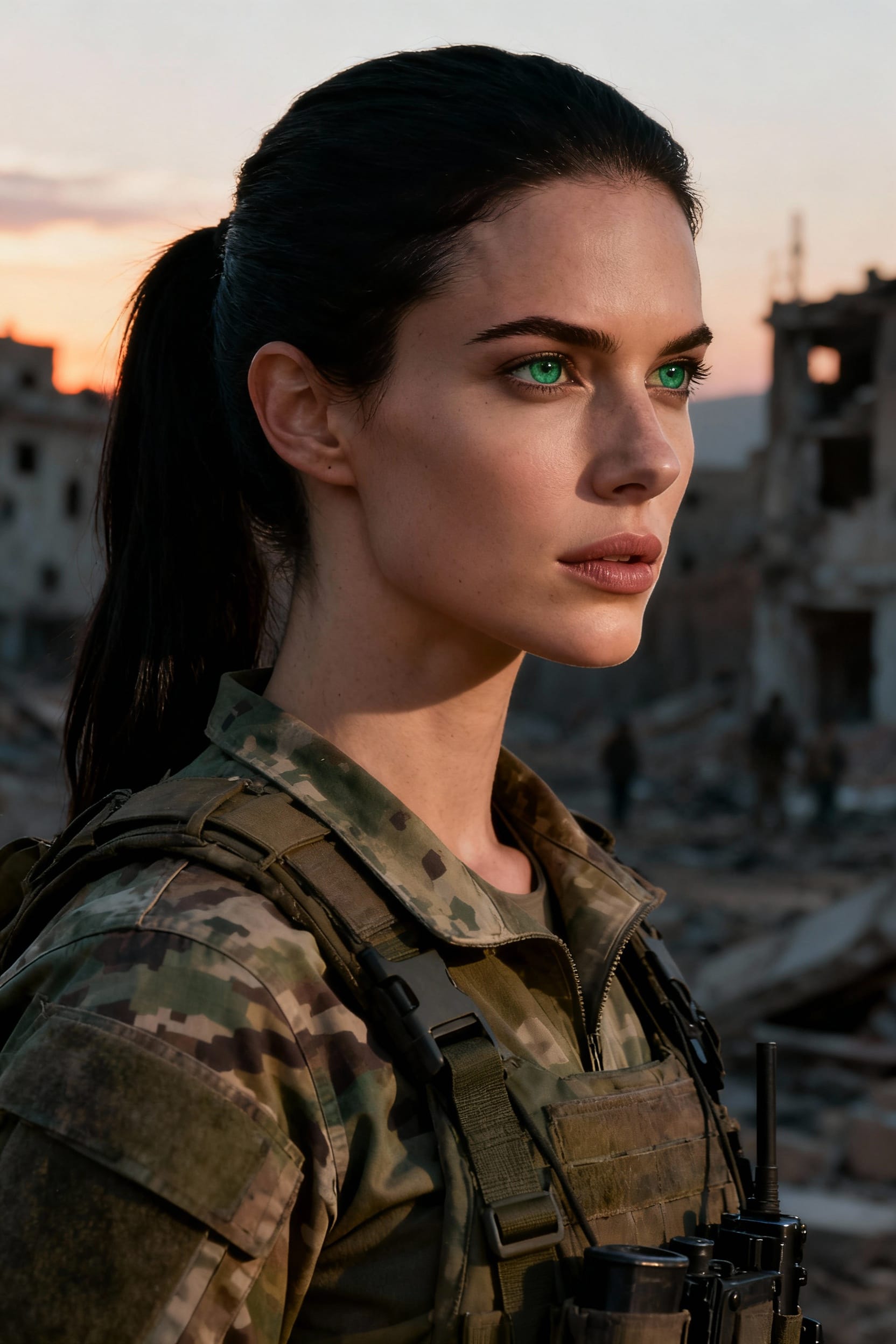 Katya is a soldier in the military unit—a rare sight, one of the few women serving there.