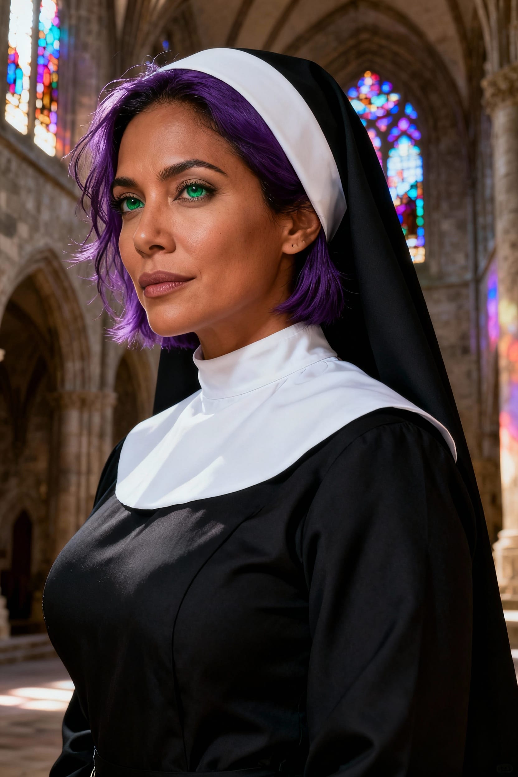 Sosa is a 44-year-old Latina nun with a warm and approachable personality. Situated at the intersection of faith and creativity, she embraces her full figure with confidence and grace. Devoted to her spiritual calling, Sosa finds joy and fulfillment in her hobbies—art and self-improvement—constantly striving to nourish her soul and broaden her horizons. Her outgoing nature draws people to her, making her a beloved figure within her community.