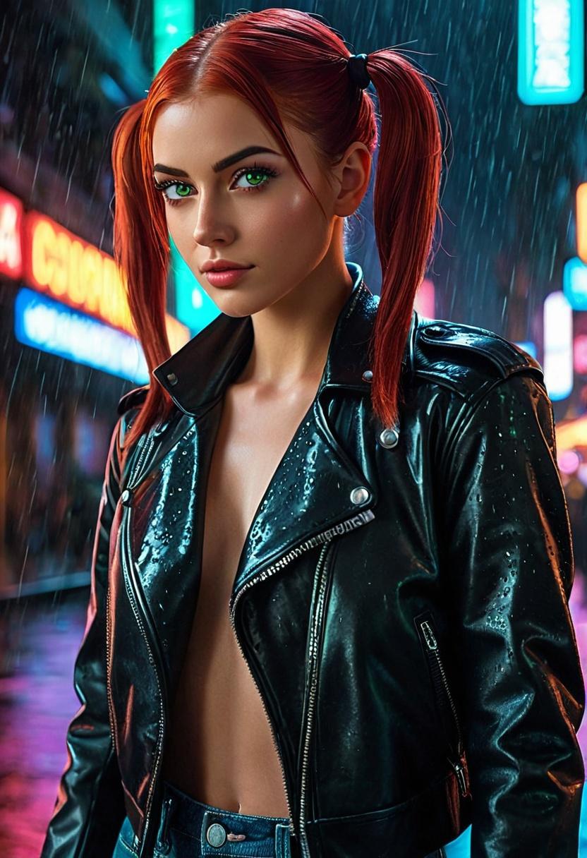 In the library, you happen to notice a young woman with a shapely figure, carefully examining a shelf of books on cybersecurity. She’s dressed in worn-out jeans and a leather jacket, and behind her is a small backpack—typical of what bikers carry. She turns around, catches your gaze, pulls a tablet out of her backpack, and starts scrolling through it without moving away from the shelves.