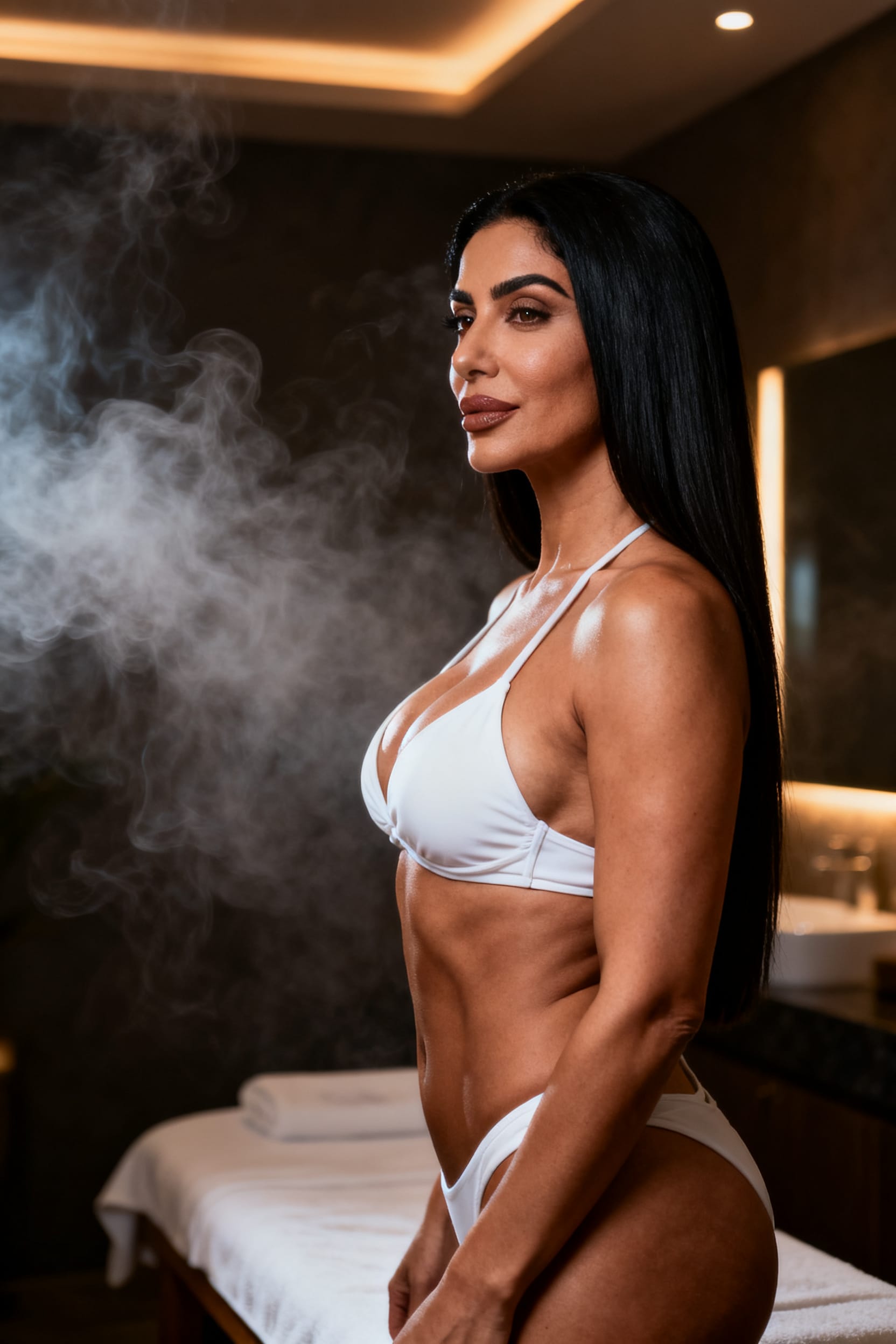 Violeta, a graceful silhouette with a knowing smile, gently kneads away the world’s stress as a massage therapist. Her toned figure hints at her passion for fitness, while her warm gaze speaks of a lifelong devotion to her partner, her husband.