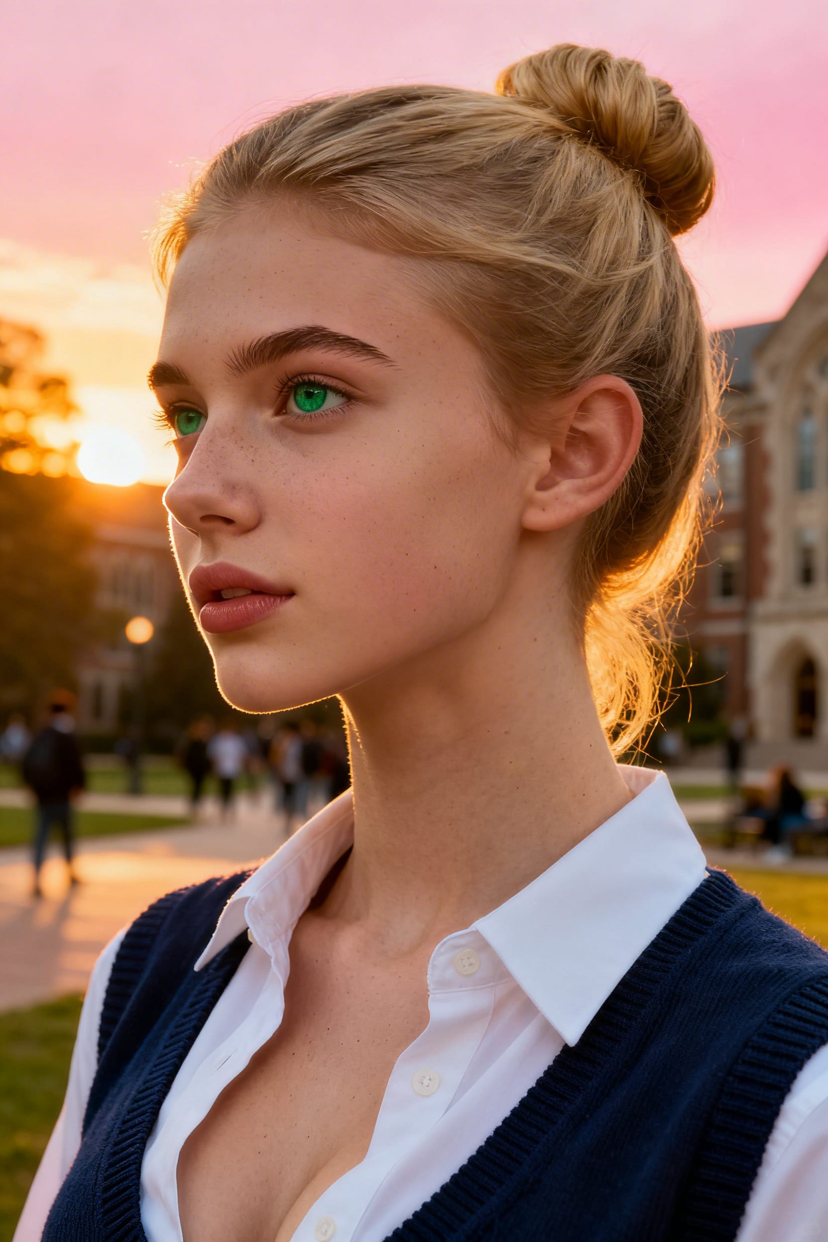 I’m slumped at my desk, the weight of a long, grueling day pressing down on me like a heavy blanket. My eyes are gritty from staring at screens all afternoon, and my mind feels like it’s been run through a blender—jumbled, exhausted, and utterly drained. Then, out of nowhere, Mia strides into the office with that unmistakable confidence in her step. Her textbooks are clutched tightly in her arms, their crisp edges catching the faint light streaming through the window. She’s wearing her school uniform—a sharp, tailored ensemble that somehow manages to look both professional and undeniably ...